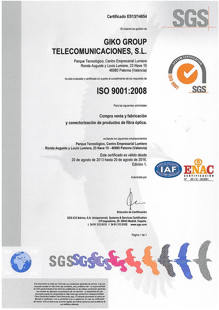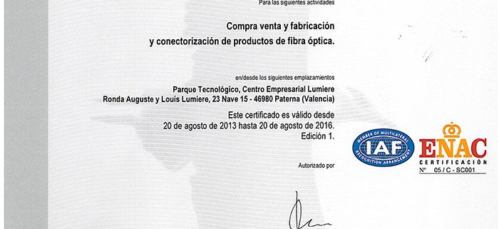 Certificado conector fibra óptica